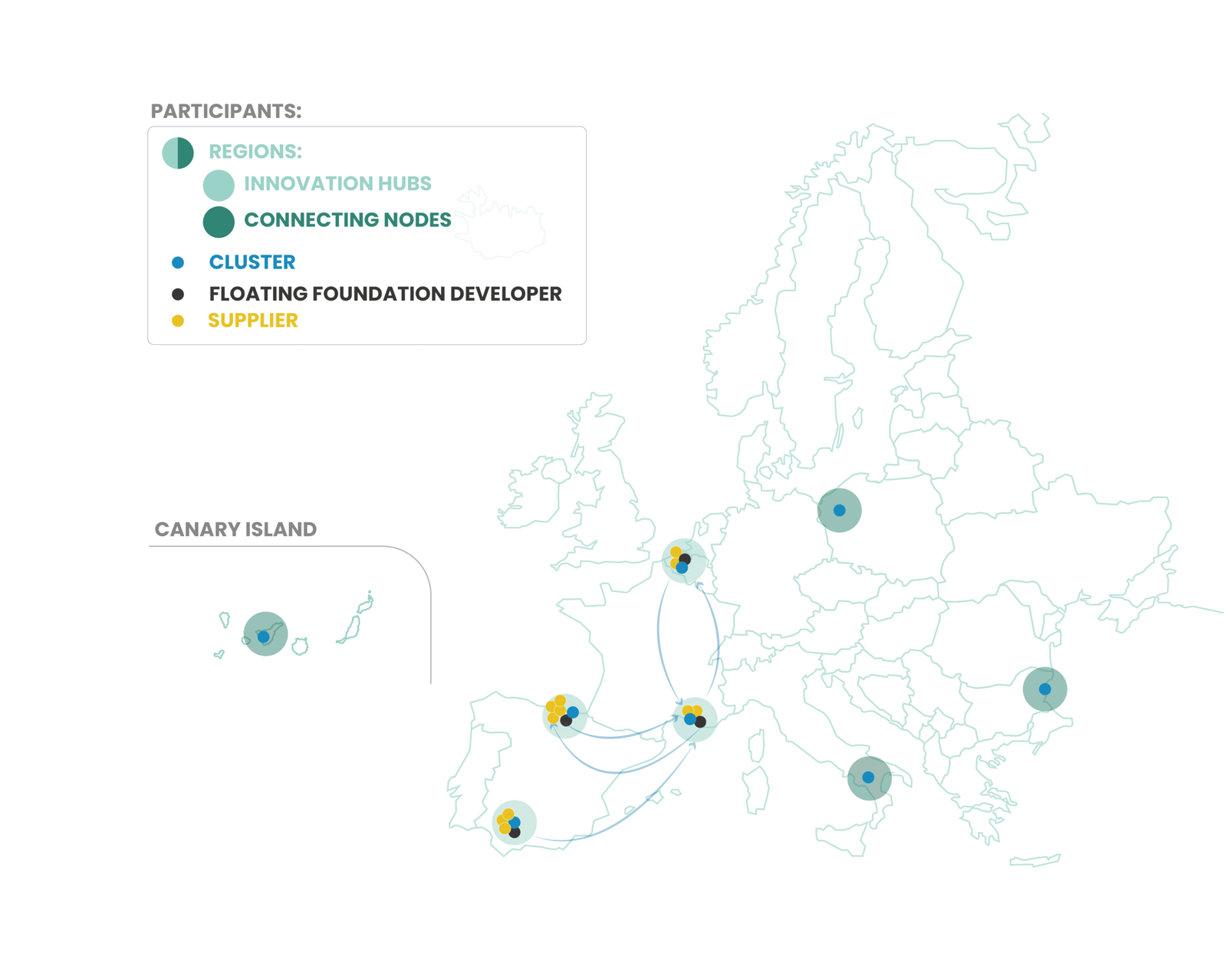 El Consorcio está coordinado por BASQUENERGY Cluster y está compuesto por otros 7 asociaciones y clusters, Blue Italian Growth, Canary Islands Maritime Cluster, Claner, De Blauwe Cluster, Marine Cluster Bulgaria, Pole Mer Mediterranee y Wind Energy Hub; 4 desarrolladores de plataformas flotantes, Enerocean, Eolink, Multi Engineering y Saitec; 11 proveedores, 24Sea, Aventa, Core Marine Solutions, Eonsea, France Energies Marines, Geodis, Ghenova Marine Renewables, Haedes Engineering, Ingenieria Zero, Oceanide y Tetrace; y con Zabala apoyando el proyecto.